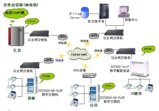 1、本方案可组成多级集散控制系统,由软交换平台主控、各营业点作为一个独立控制点发展业务。